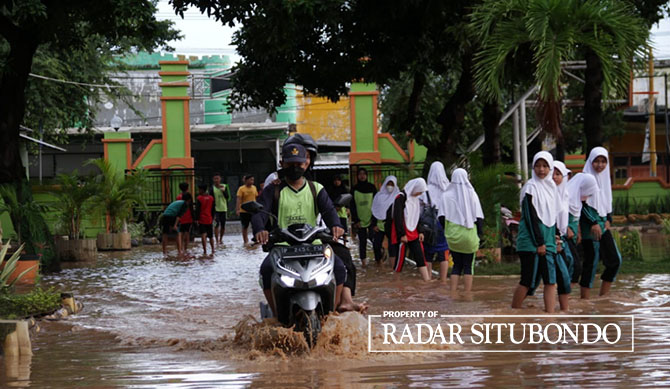 Ratusan rumah di empat kecamatan di Situbondo tergenang banjir. Sejumlah wilayah tersebut diguyur hujan lebat pada Selasa malam (28/2). Hingga Rabu (1/3), warga terdampak tampak masih sibuk menguras lumpur yang masuk ke dalam rumahnya.