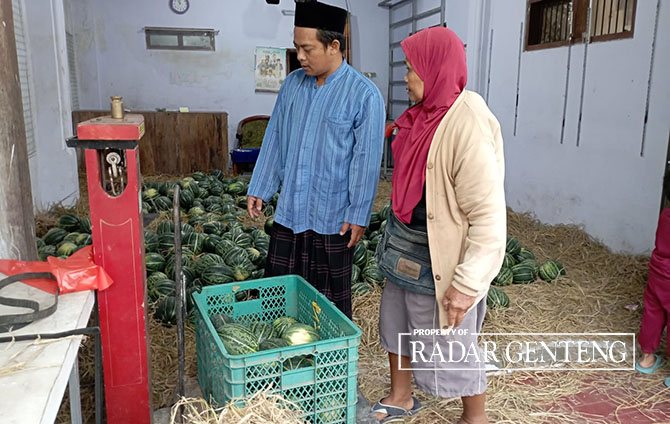 Berbagai cara dilakukan untuk mencari rezeki saat Ramadan. Mohammad Antok, 43, asal Dusun Cangaan, Desa Genteng Wetan, Kecamatan Genteng, Banyuwangi, yang mulanya jualan pakaian banting setir dengan jualan blewah, Kamis (24/3).